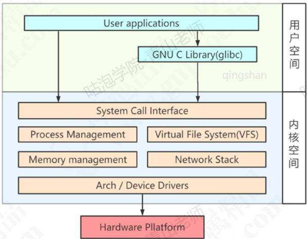 一部分是内核空间(Kernel-space),一部分是用户空间(User-space)。