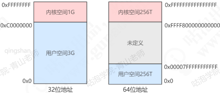 Linux/GNU的虚拟内存又进一步划分成了两块
