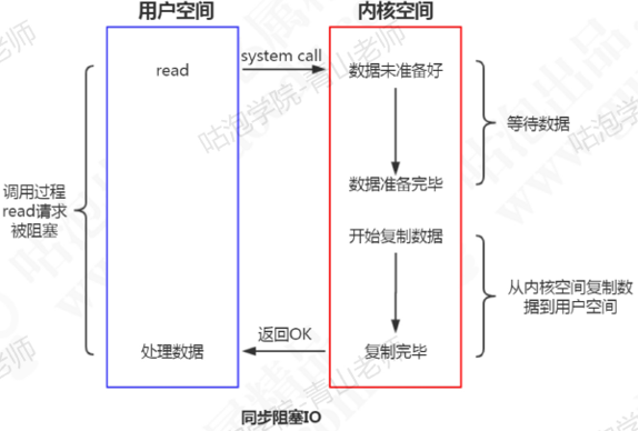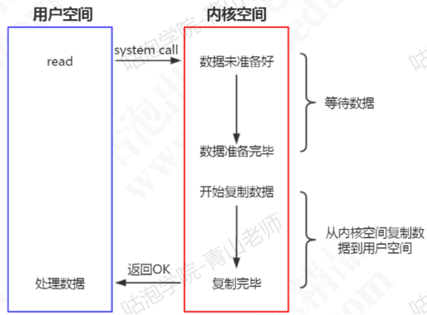当使用read或write对某个文件描述符进行过读写时,如果当前FD不可读,系统就不会对其他的操作做出响应,从硬件设备复制数据到内核缓冲区是阻塞的,从内核缓冲区拷贝到用户空间,也是阻塞的,知道copy complete,内核返回结果,用户进程才解除block的状态。