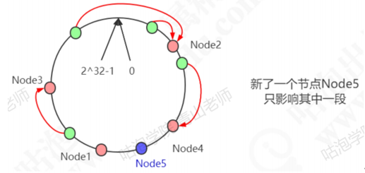 在这种情况下,新增了一个node5节点,只影响一部分数据的分布。