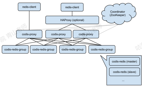 Codis是一个代理中间件,豌豆荚公司用Go语言开发的(快三年时间没有更新了)。跟数据库分库分表中间件的Mycat的工作层次是一样的。功能:客户端连接Codis跟连接redis没有区别。