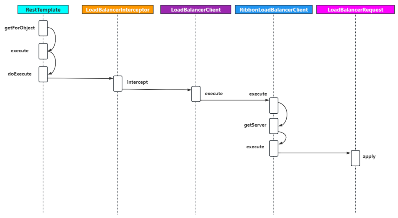 实际上,loadbalancer注解就是给RestTemplate添加了一个拦截器,调用过程简单来说,就是RestTemplate加上loadbalancer注解后,在创建请求之前添加了一个拦截器,在拦截器中通过服务名称调用LoadBalancer的choose方法,获取到真实的ip:port然后再拼接上具体的接口,替换原有uri,再通过RestTemplate进行远程调用。