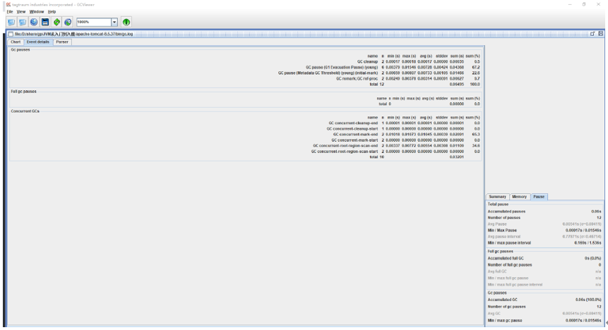 修改配置参数,获取到gc日志,使用GCViewer分析吞吐量和响应时间