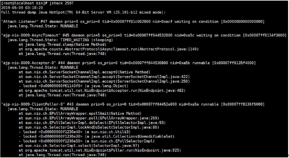 (1)查看线程堆栈信息