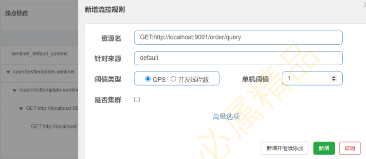 (7)在sentinel dashboard上设置流控规则