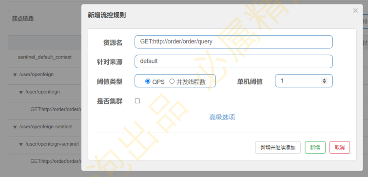 (4)在sentinel dashboard上设置流控规则