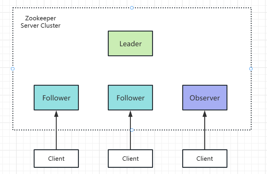 Observer:可以有多个,只能处理客户端的读请求,要是收到写请求,则会转发给Leader进行处理,与Follower不同的是,Observer不参与Leader的投票选举以及写请求的提议和提交过程。