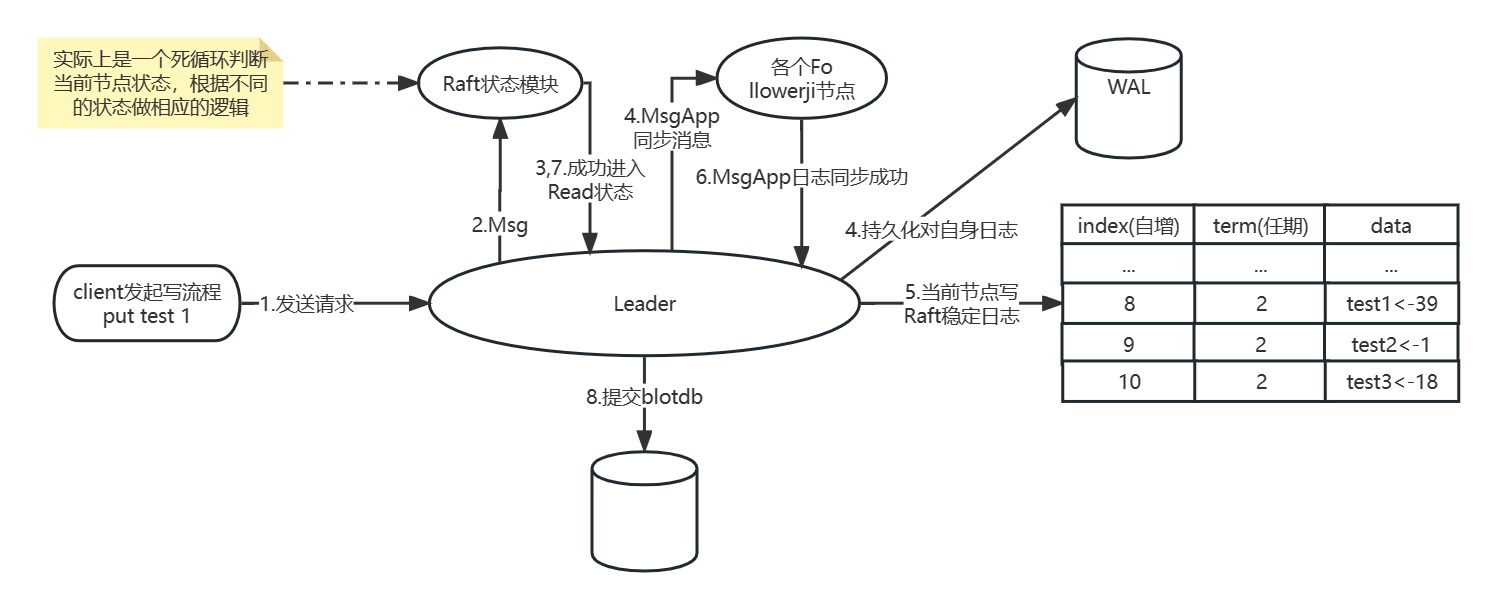 流程5:各节点将Raft日志进行持久化,防止节点在数据存到 boltdb之前挂掉导致数据丢失