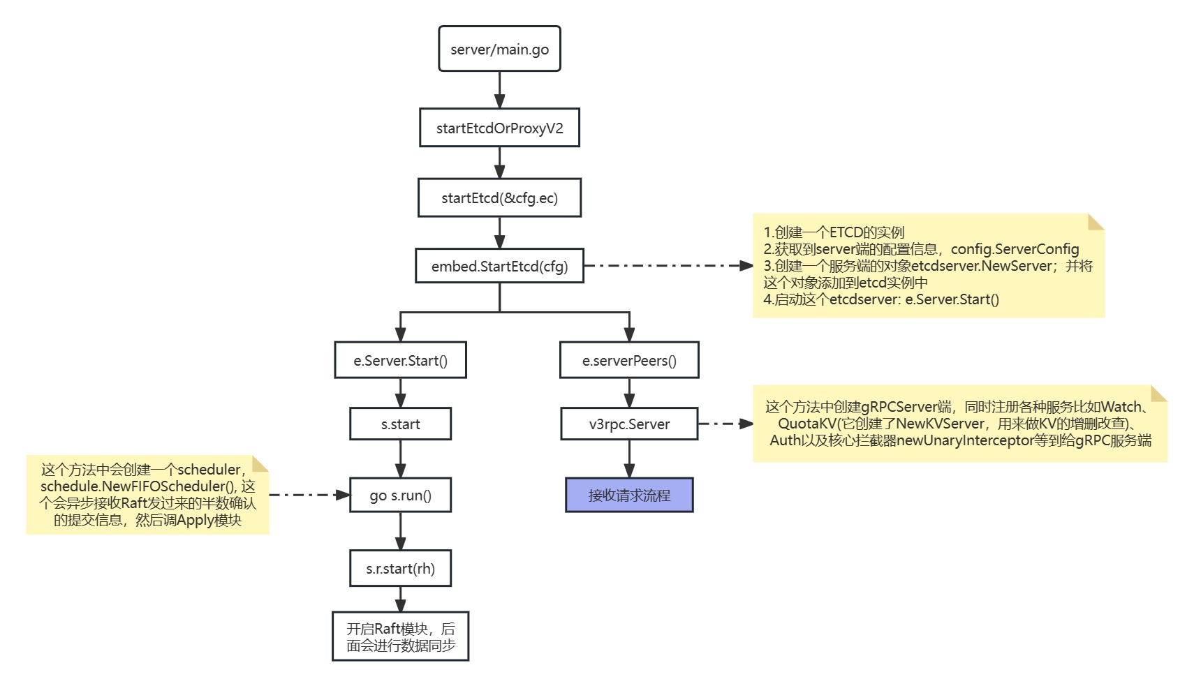 - 创建了各种异步协程、通道、注册各种模块 (KVServer、拦截器)到gRPC
