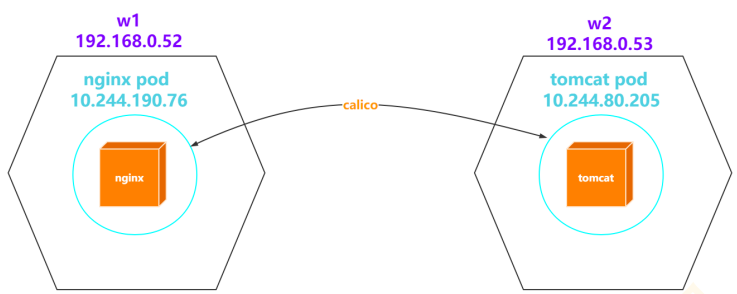 NAME READY STATUS RESTARTS AGE IP NODE NOMINATED NODE READINESS GATES nginx 1/1 Running 0 2m 10.244.190.76 w1 <none> <none> tomcat 1/1 Running 0 17s 10.244.80.205 w2 <none> <none>