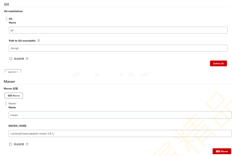 (7)配置java maven和git等:Dashboard-> Manage Jenkins-> Global Tool Configuration