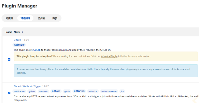 Dashboard-> Manage Jenkins-> Manage Plugins-> 可选插件