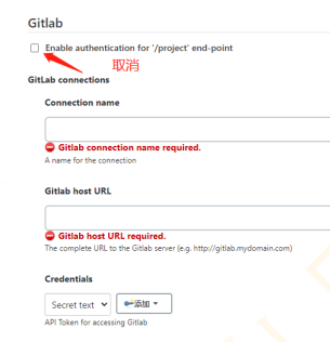 (6)因为是测试环境,所以暂时可以先不配置jenkins需要的token,也就是说在Jenkins中取消Gitlab Server的认证