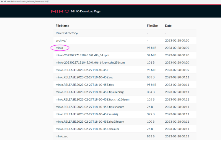 地址-1:https://dl.min.io/ (建议) (server ==> minio ==> release ==> linux-amd64 ==> minio)