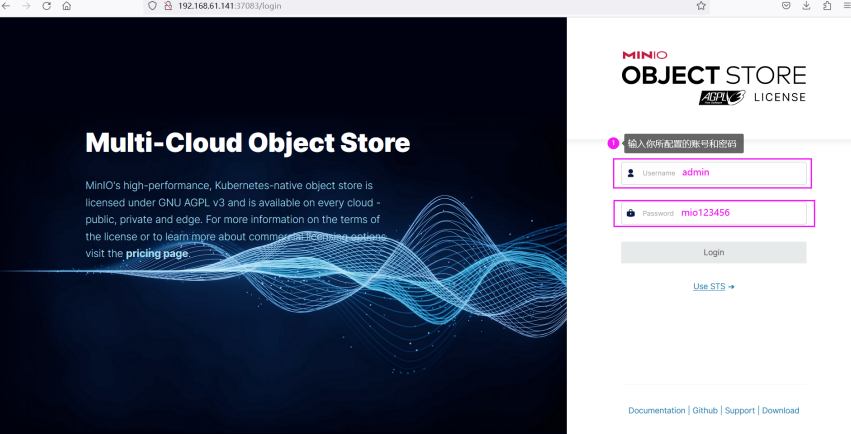 export MINIO_ACCESS_KEY=admin export MINIO_SECRET_KEY=minio123456 /data/minio/minio server /data/minio/ > /data/minio/minio.log