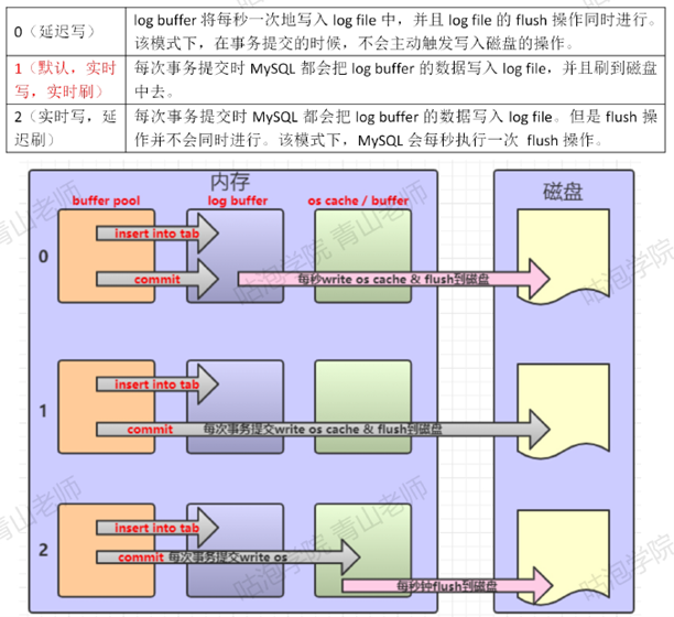 在我们写入数据到磁盘的时候,操作系统本身是有缓冲的,flush就是把操作系统缓冲区写入到磁盘。Log buffer写入磁盘的时机由一个参数控制,默认是1。刷盘越快越安全,但是也会越消耗性能。