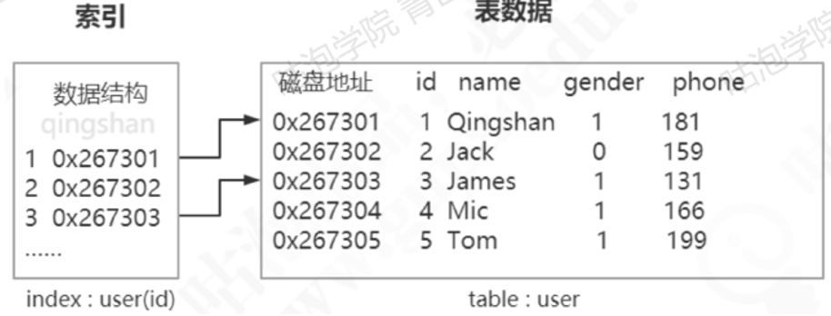 第二个是数据的磁盘地址,因为索引的作用就是去查找数据存放的地址。