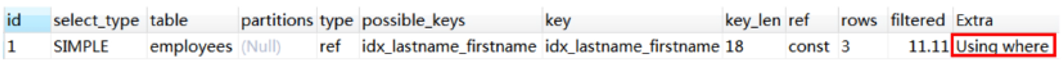 Using where代表从存储引擎返回的数据不全部满足条件,需要再server层过滤。