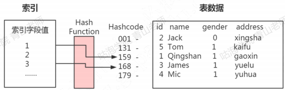 HASH:以KV的形式检索数据,也就是说,它会根据字段生成哈希码和指针,指针指向数据。
