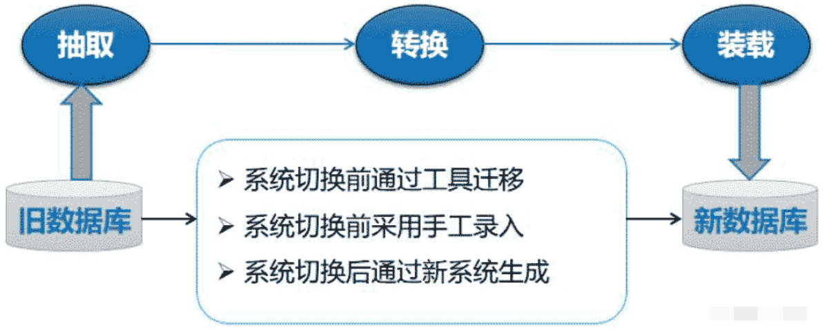 数据迁移的主要方法大致有三种,分别是系统切换前通过工具迁移、系统切换前采用手工录入和系统切换后通过新系统生成。