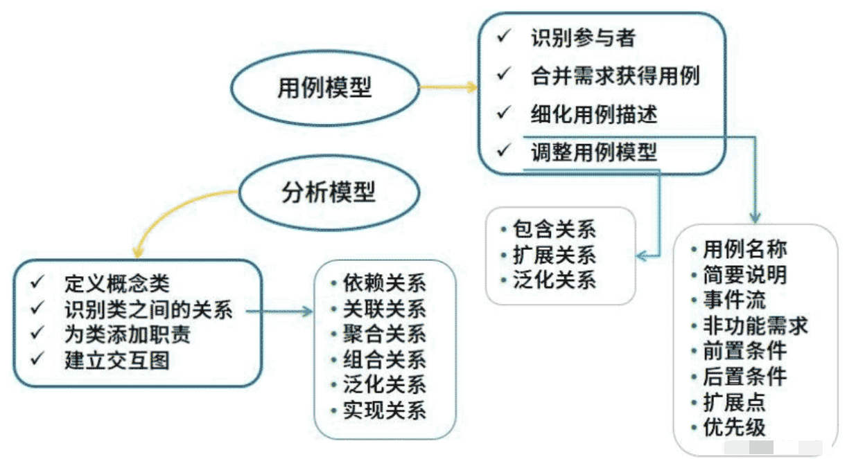 OOA需求分析的UML(统一建模语言,与平台和语言无关)由基本构造块,规则和公共机制构成。