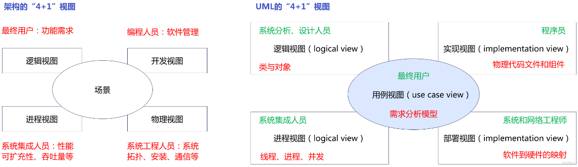 软件架构设计通过多种视图全面描述 4 + 1 视图。