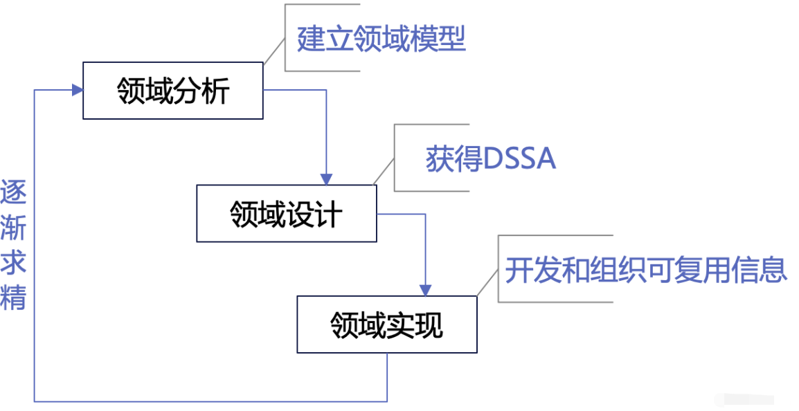 (1)建立领域模型,一个严格定义的问题域或解决域。其中,垂直域是在相同领域中深入;水平域是在不同领域中平移。