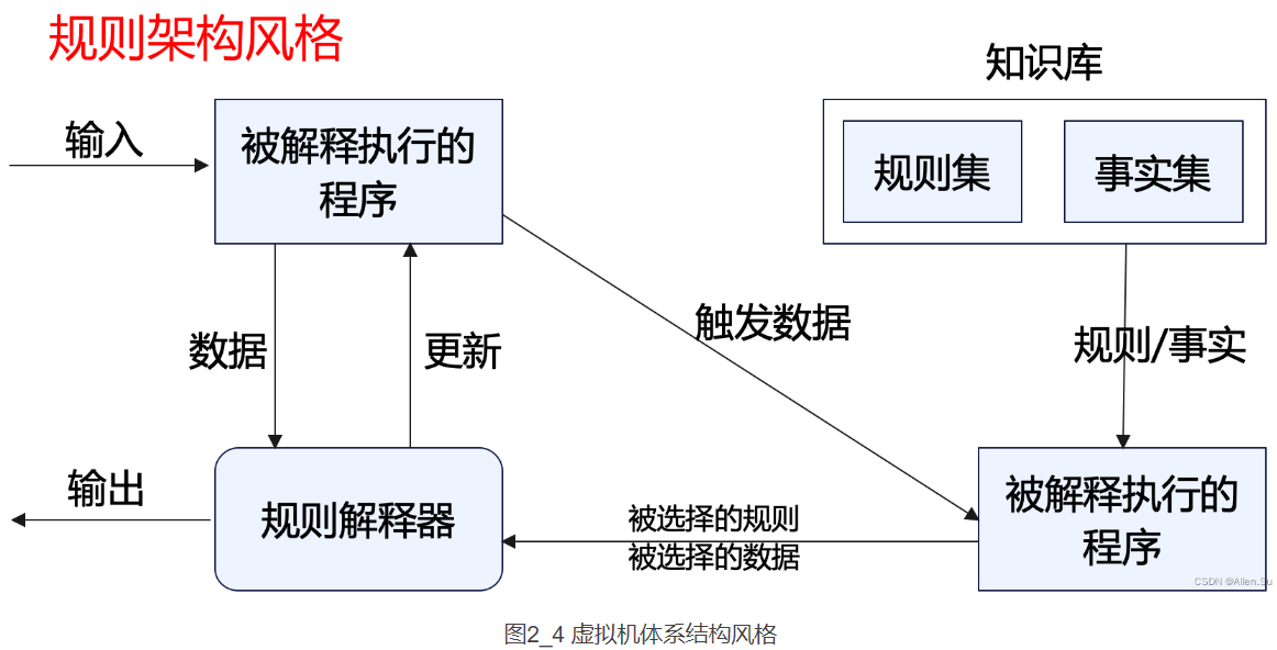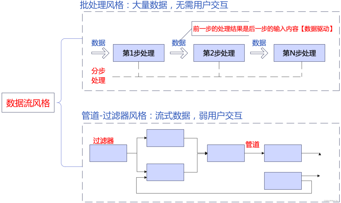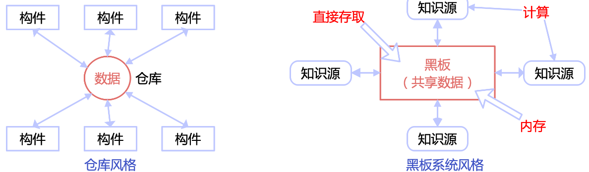 | 以数据为中心风格 | 数据库系统、黑板系统、超文本系统 |