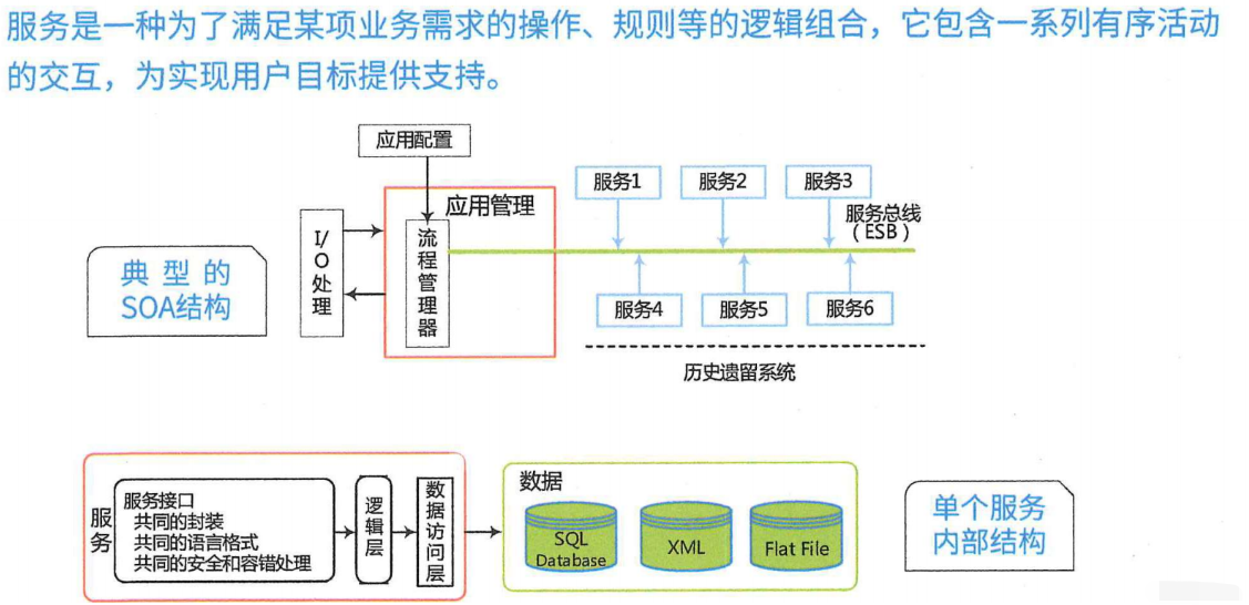 从软件的基本原理定义,可以认为SOA是一个组件模型,它将应用程序的不同功能单元(称为服务)通过这些服务之间定义良好的 需接口和契约 联系起来。接口是采用中立的方式进行定义的,它应该独立与实现服务的硬件平台、操作系统和编程语言。这使得构建在各种这样的系统中的服务可以一种统一和通用的方式进行交互。