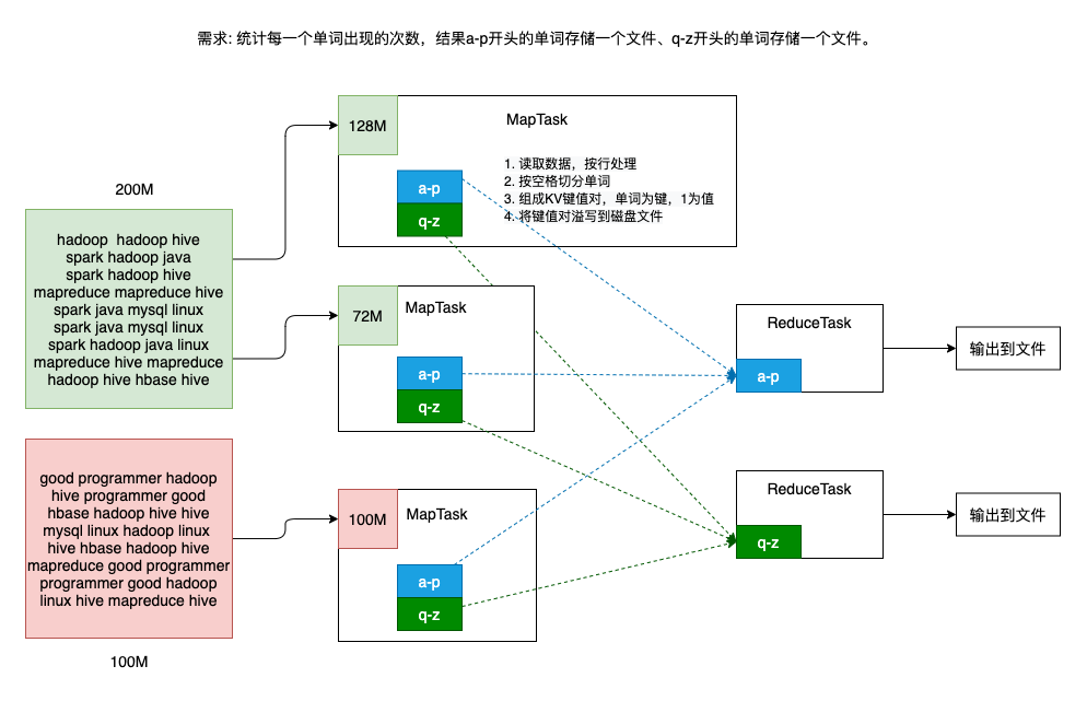 5.1 第一阶段:Map 第一阶段,也称之为Map阶段。这个阶段会有若干个MapTask实例,完全并行运行,互不相干。每个MapTask会读取分析一个InputSplit(输入分片,简称分片)对应的原始数据。计算的结果数据会临时保存到所在节点的本地磁盘里。