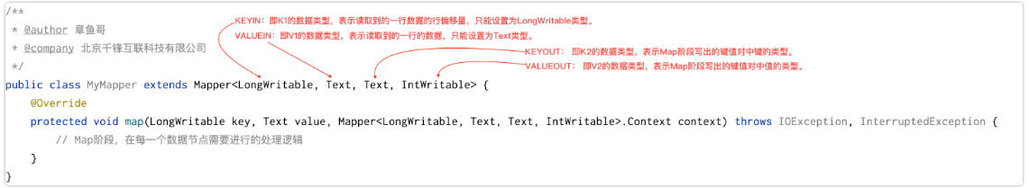 定义K1,V1,K2,V2的泛型(K1,V1是Mapper的输入数据类型,K2,V2是Mapper的输出数据类型)