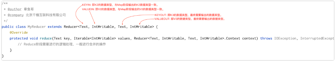 定义K2,V2,K3,V3的泛型(K2,V2是Reducer的输入数据类型,K3,V3是Reducer的输出数据类型)
