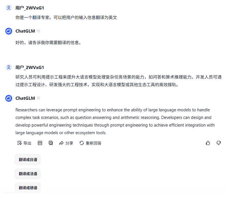 可以通过提示词的设计让大模型变为翻译工具