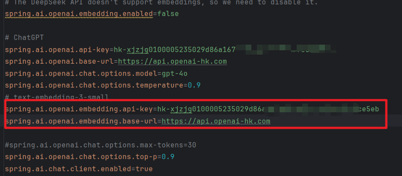 这里可以通过OpenAI提供的向量模型来处理。首先是配置相关的信息
