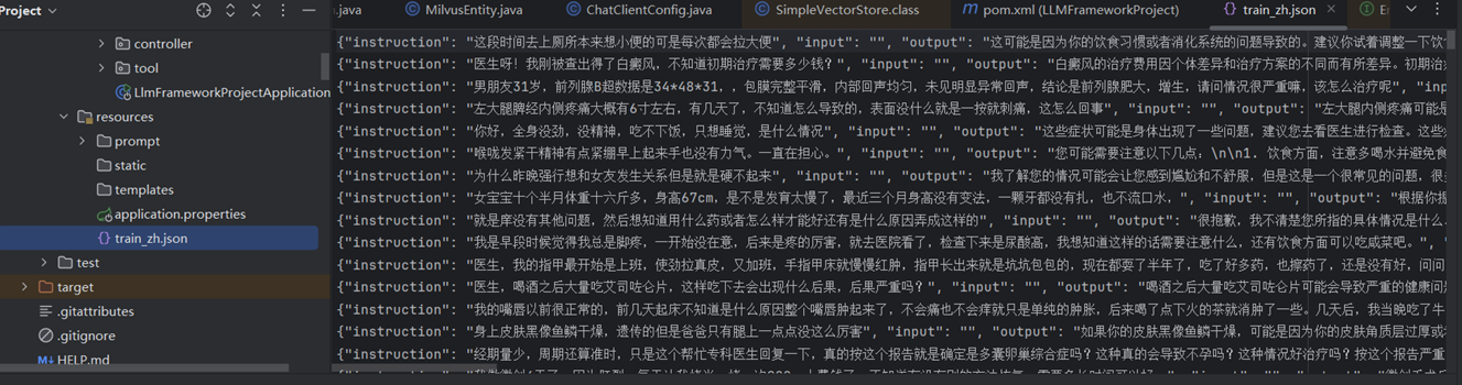 现在就可以通过代码把需要准备的数据插入到Milvus数据库中去了,数据存放在resources目录下